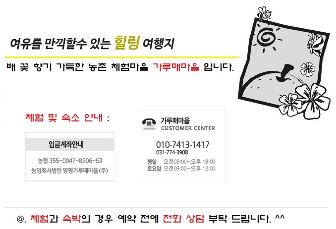 주소 경기도 양평군 지평면 부일길 101 가루매농촌체험마을