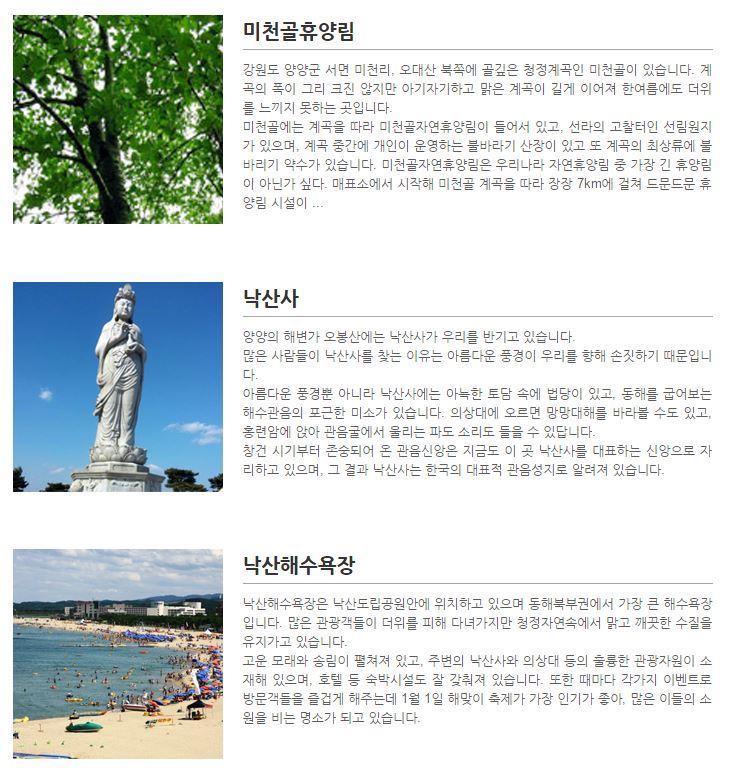 * 양양양수발전소(에너지근원), 낙산사, 오색약수, 갈천약수, 설악산
