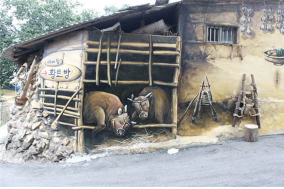 골 정취가 물씬 풍기는 벽화를 그렸다.